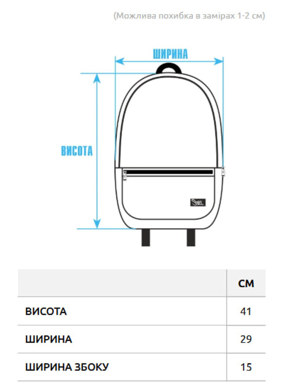 - размер: высота 41 см; ширина 29 см; ширина сбоку 15 см;