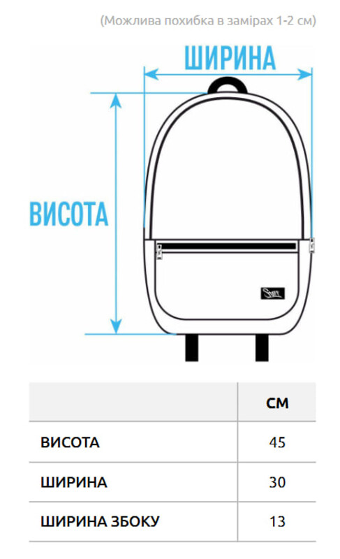 - размер: высота 45 см; ширина 30 см; ширина сбоку 13 см;