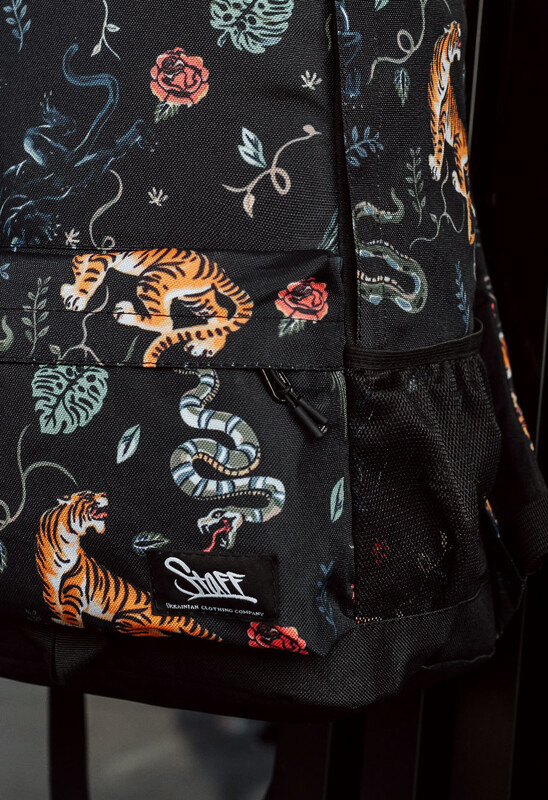 - основне відділення на двоходовій блискавці, нижня кишеня на блискавці, дві сітчатих кишені з боків;