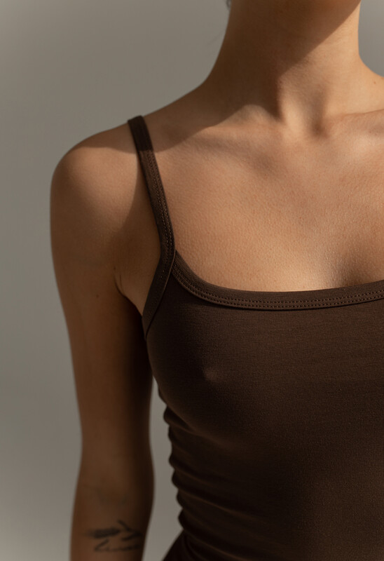 Удобный сплошной боди с классической посадкой и узкими регулируемыми по длине бретелями идеально садится по фигуре и дарит безграничный комфорт.