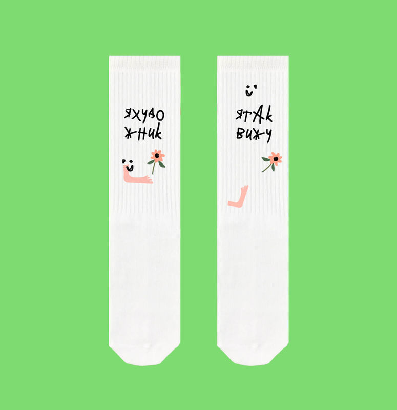 • Хлопковые белые носки SOX с надписью "Я художник, я так вижу"
