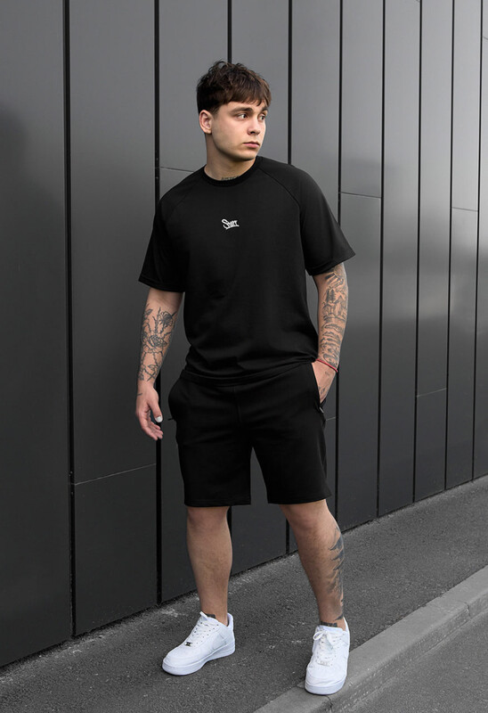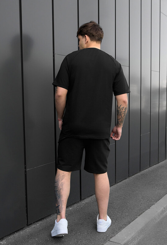 Летний комплект, минималистичный дизайн которого дополняет принт на груди и карманы на молнии – для большей безопасности твоих личных вещей.