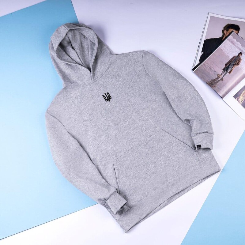 • Худи бренда Pobedov серого цвета с вышитым гербом