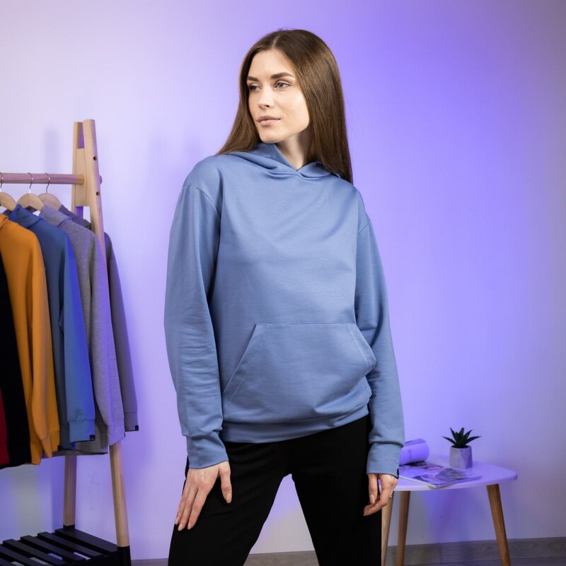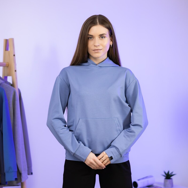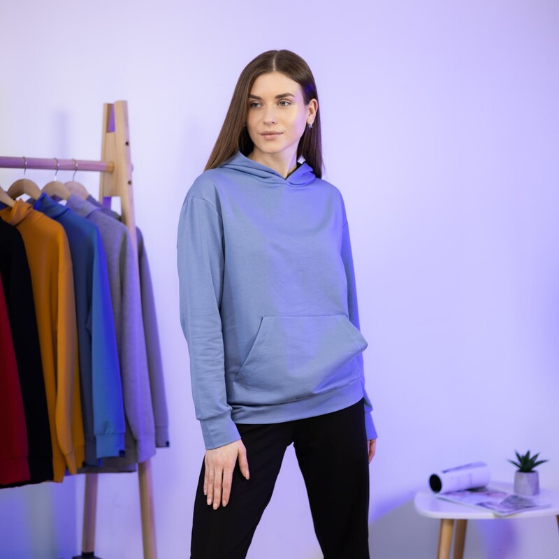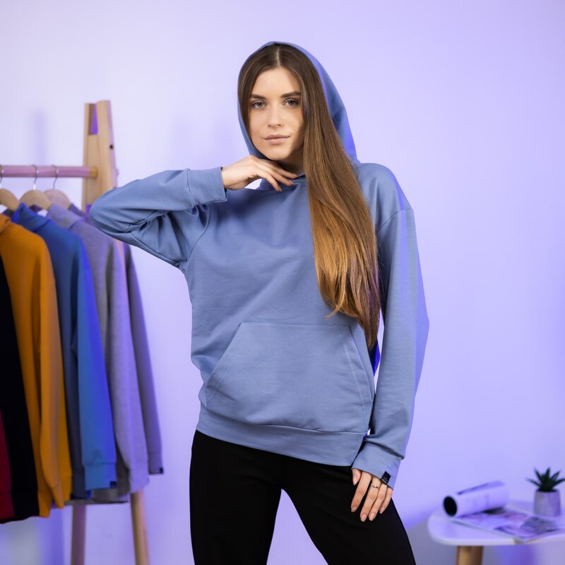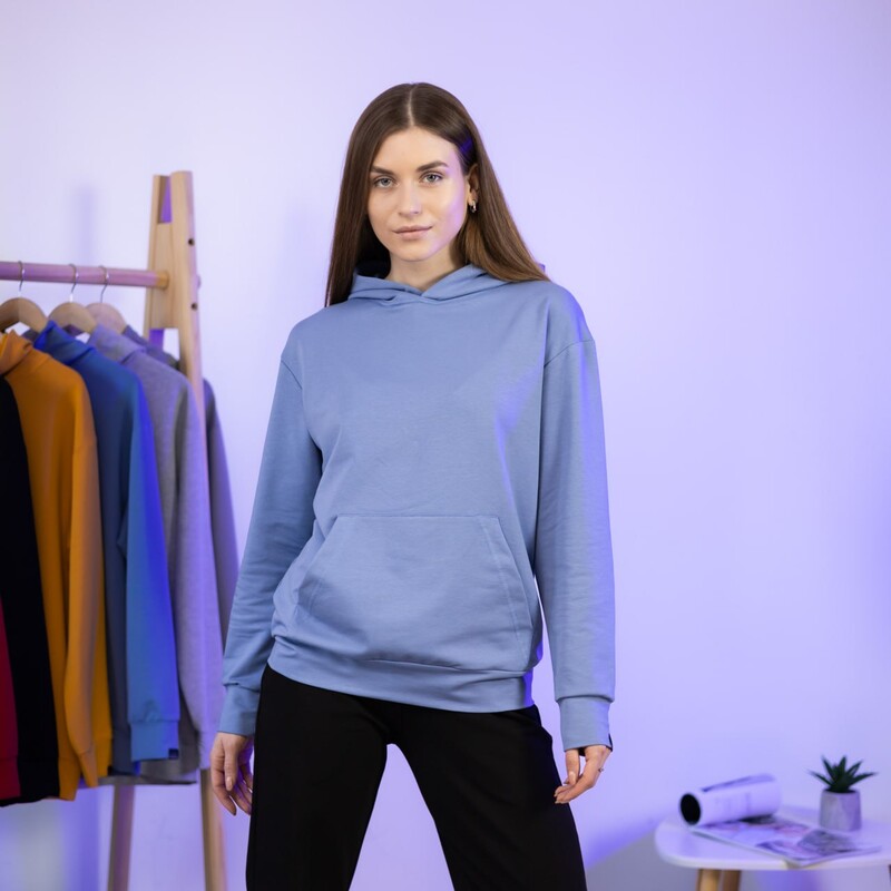 Материал: качественная турецкая двунитка, не линяет и не кашлатится. Из-за высокого содержания хлопка ткань не парит. Объемный, двойной вшитый капюшон (с внутренней стороны закрыт такой же тканью, что и верх худи). Карман в стиле "кенгуру"