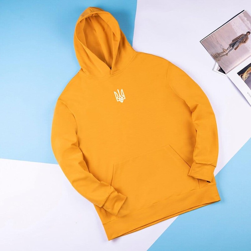 Фото - Желтое худи Pobedov 008 с черной вышивкой "Герб Украины" - Men box