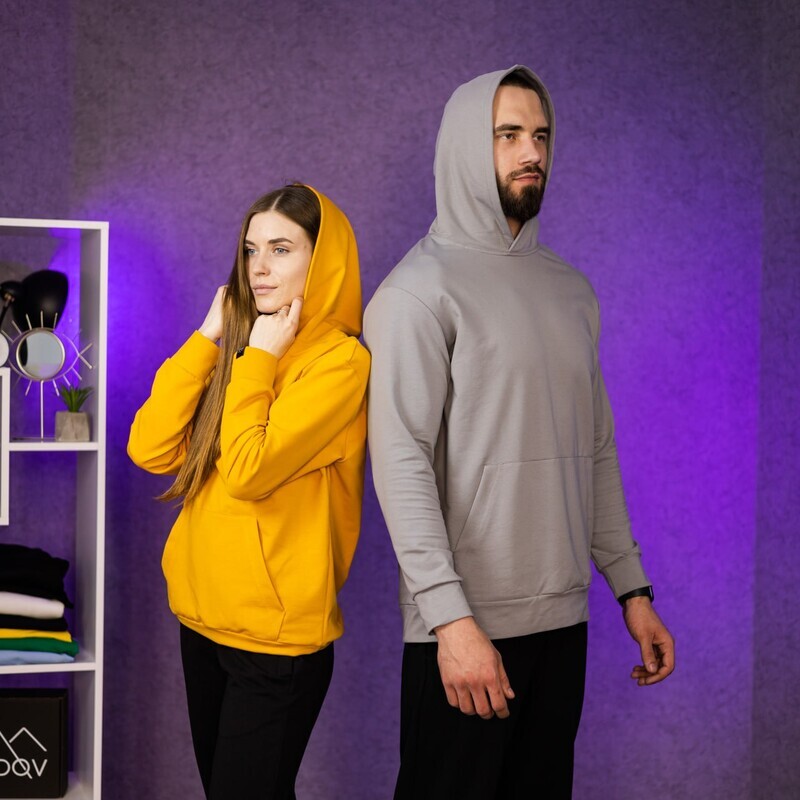 Материал: качественная турецкая двунитка, не линяет и не кашлатится. Из-за высокого содержания хлопка ткань не парит. Объемный, двойной вшитый капюшон (с внутренней стороны закрыт такой же тканью, что и верх худи). Карман в стиле "кенгуру"