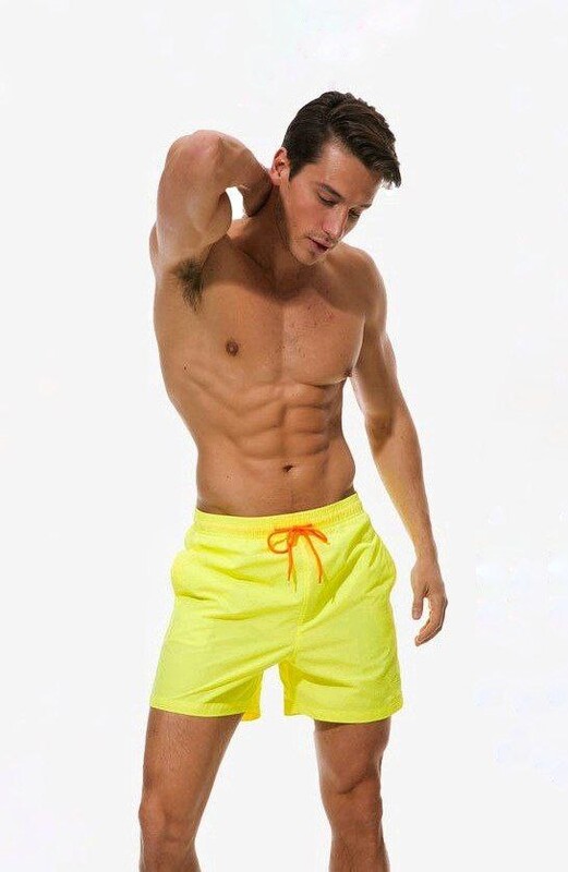 Фото - Яркие пляжные шорты от бренда Escatch желтого цвета - Men box