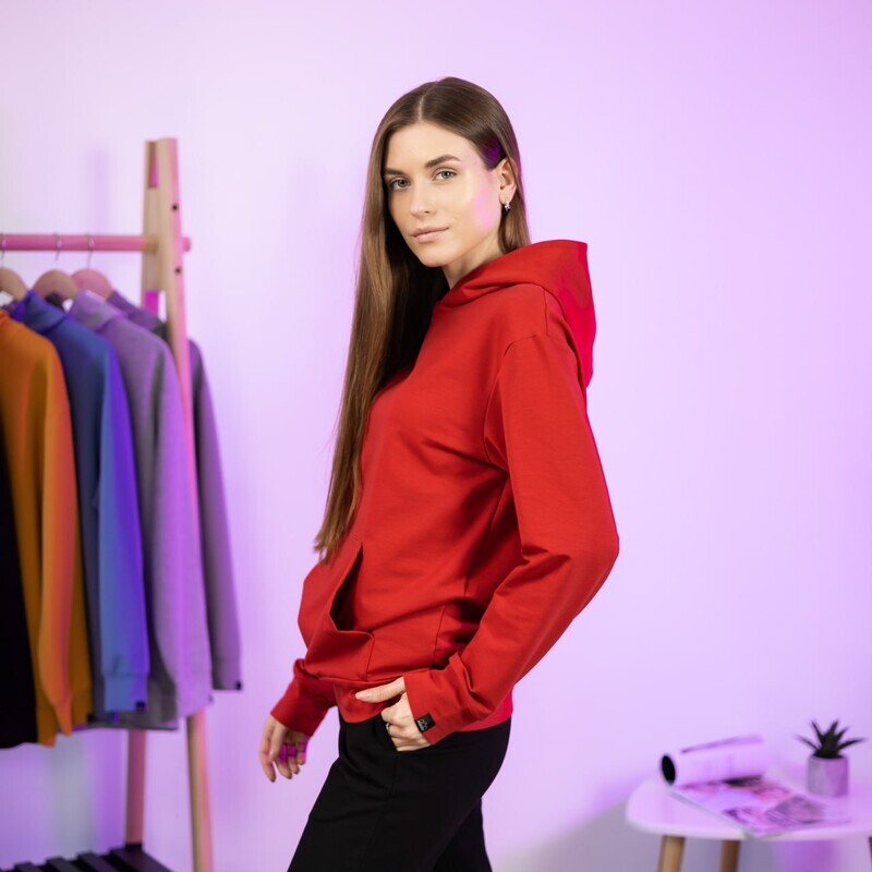 Материал: качественная турецкая двунитка, не линяет и не кашлатится. Из-за высокого содержания хлопка ткань не парит. Объемный, двойной вшитый капюшон (с внутренней стороны закрыт такой же тканью, что и верх худи). Карман в стиле "кенгуру"