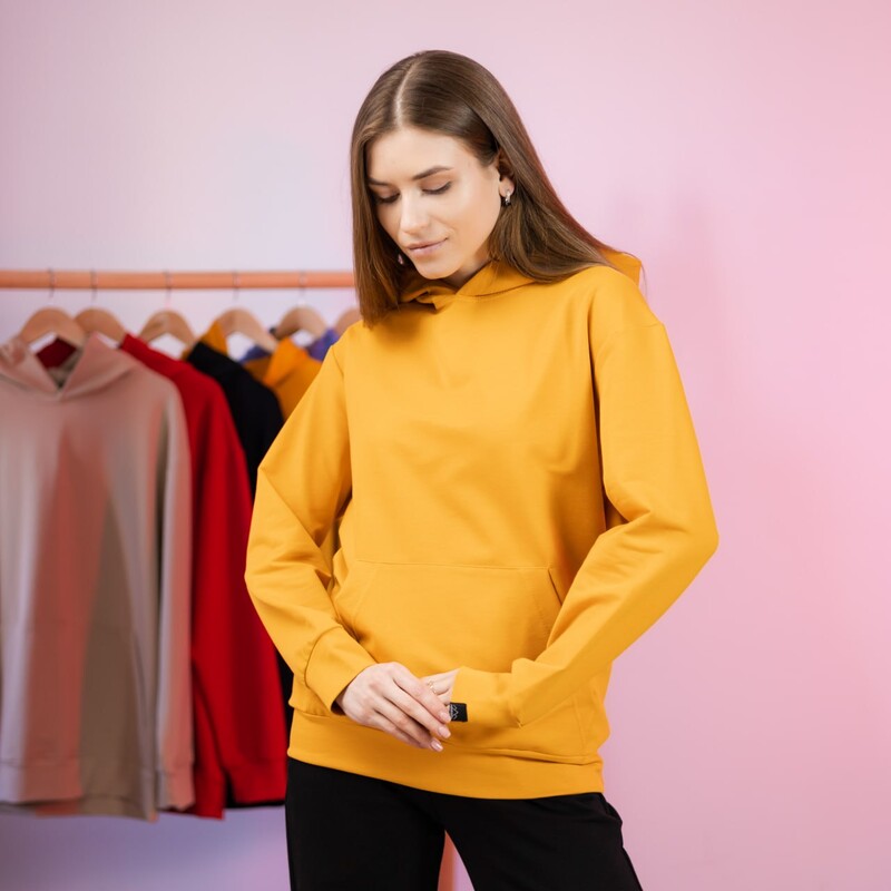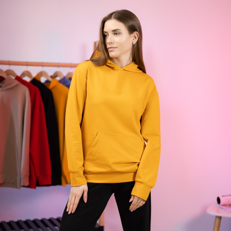 Материал: качественная турецкая двунитка, не линяет и не кашлатится. Из-за высокого содержания хлопка ткань не парит. Объемный, двойной вшитый капюшон (с внутренней стороны закрыт такой же тканью, что и верх худи). Карман в стиле "кенгуру"