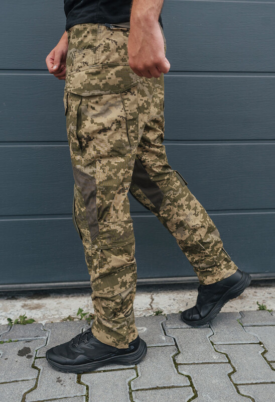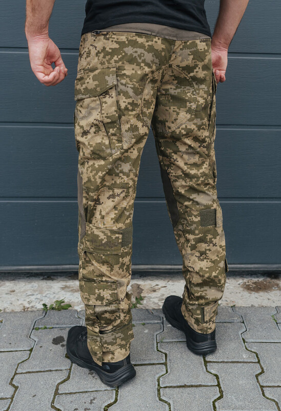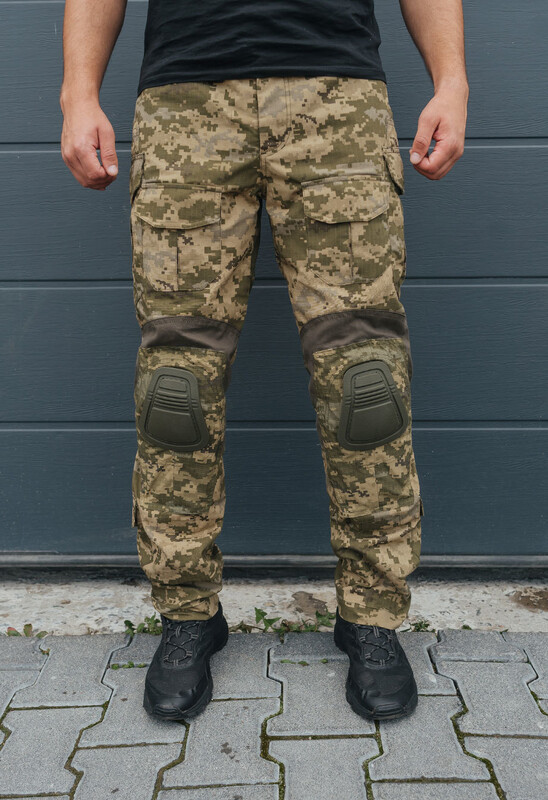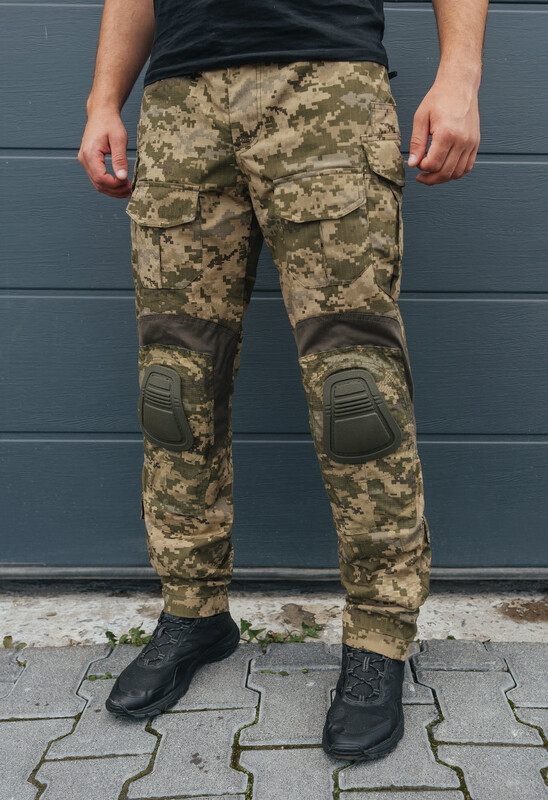 Тактические штаны незаменимы в походе, на тренировке или в поездке. Устойчивая к разрывам ткань рип-стоп отлично выдерживает любые нагрузки, не пропускает влагу и холодный воздух, при этом не сковывая движений. Дополнительная вставка сзади под поясом гарантирует эластичность верхней части штанов. Многочисленные карманы позволяют разместить под рукой всё самое необходимое. Прочные планки на липучке легко отрегулируют ширину штанин, а специальные петли на ремне помогут закрепить нужный инвентарь. Удобные наколенники, высоту которых можно установить с помощью пластиковых фиксаторов, защищают в экстренных ситуациях и при упоре на колено.