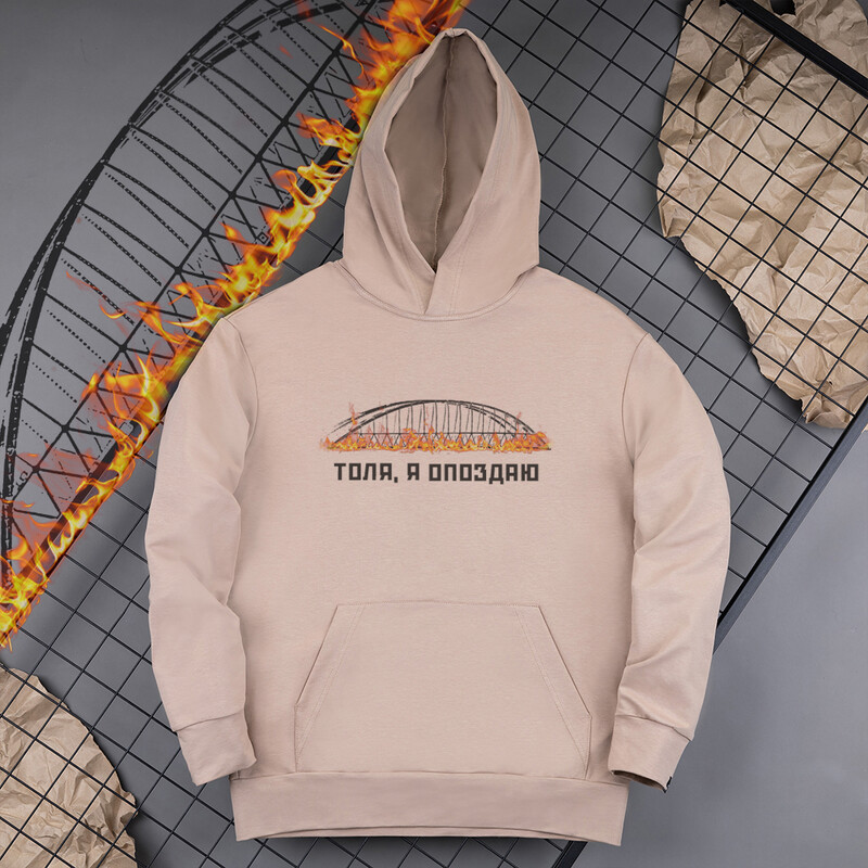 • Кофта Pobedov "Толя, я опоздаю" с капюшоном бежевая