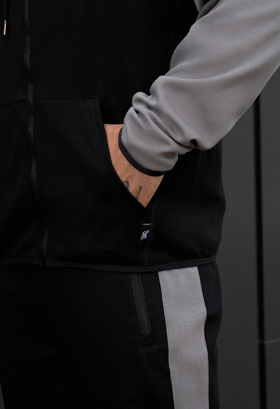 Практичный спортивный костюм с карманами на молниях для надежного хранения личных мелочей во время прогулок и тренировок.
