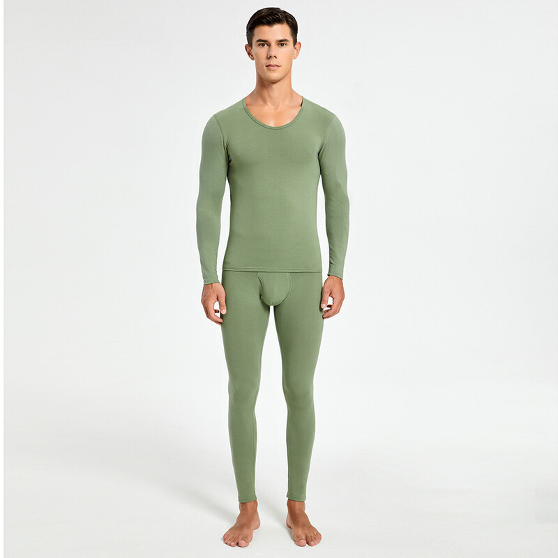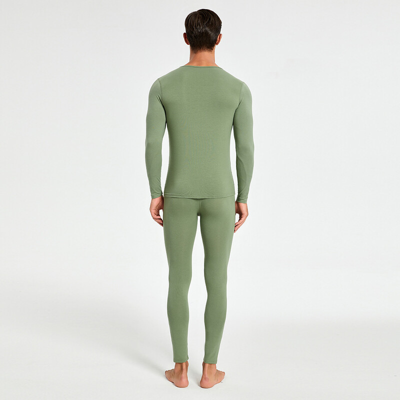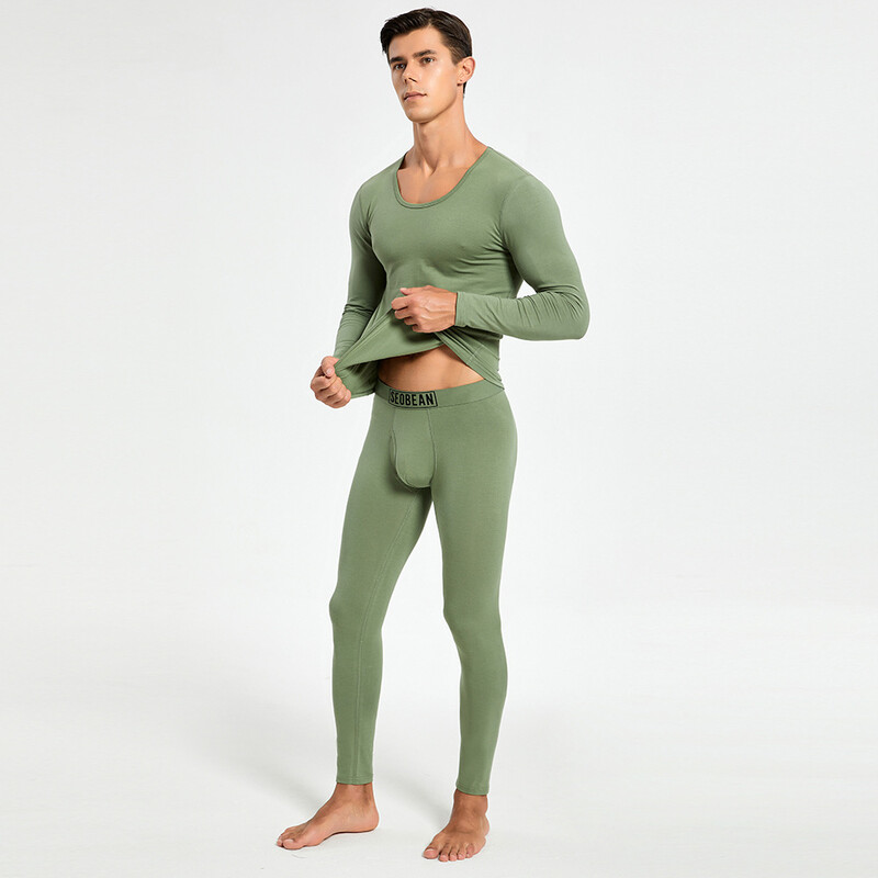 Мужской комплект белья Seobean в оливковом цвете состоит из кальсонов и кофты из хлопковой ткани с эластичными свойствами. Материал приятный к телу, дышащий и комфортный для ежедневной носки. Комплект удобно сидит по фигуре, не сковывает движений и подходит для холодного времени года и межсезонья. Оливковый цвет выглядит практично и современно.