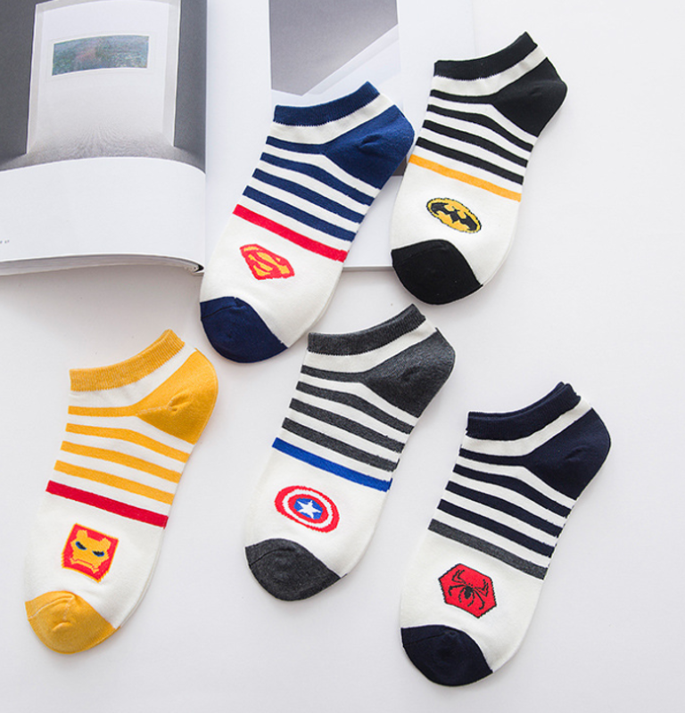 Купить комплект коротких полосатых носков с супергероями бренда RSC можно в интернет-магазине Menbox. У нас имеется большой выбор разнообразных по дизайну и стоимости мужских и женских носков.