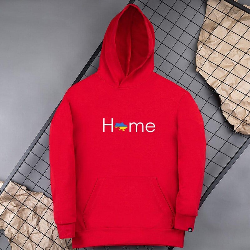 • Красное унисекс худи Pobedov с принтом "HOME"
