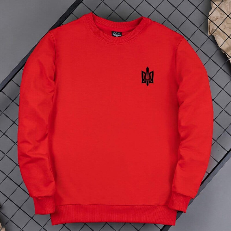 • Красный унисекс свитшот от бренда Pobedov "Тризуб Меч"