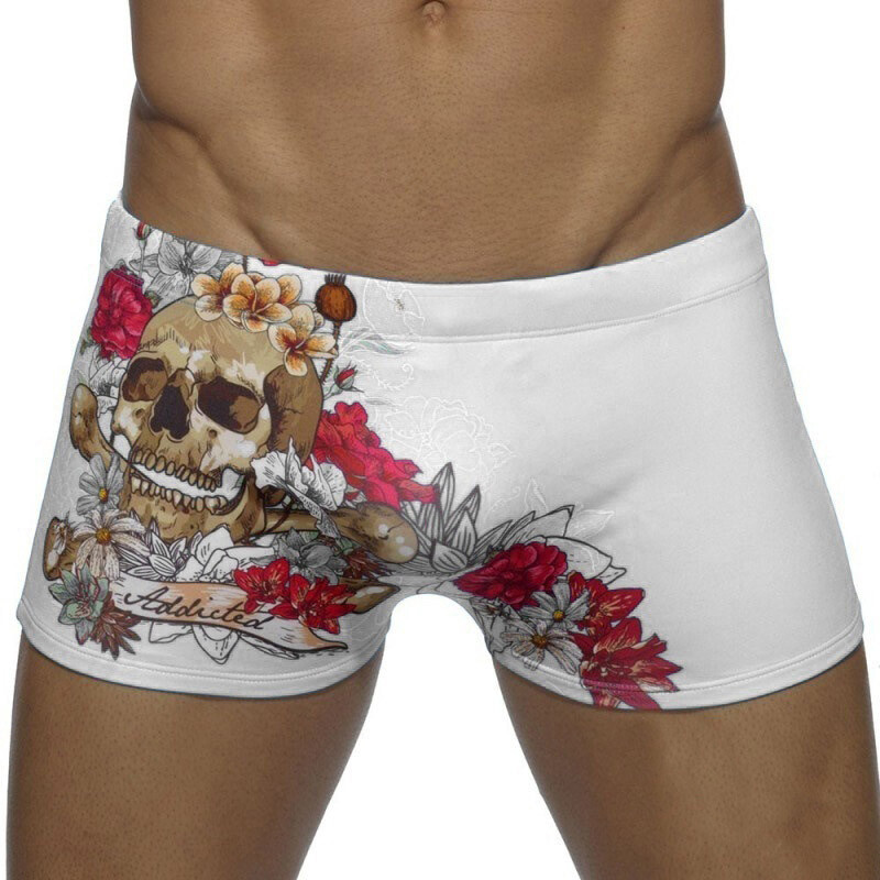 • Купальные плавки от бренда Addtexod белые с ярким принтом