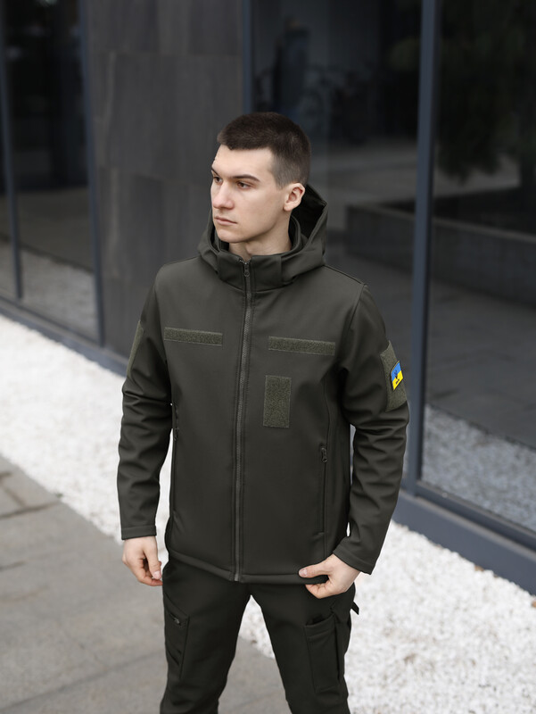 Курта изготовлена из материала: Soft Shell - верхний слой состоит из водоотталкивающей плащевки, нижний слой из приятного к телу микрофлиса.