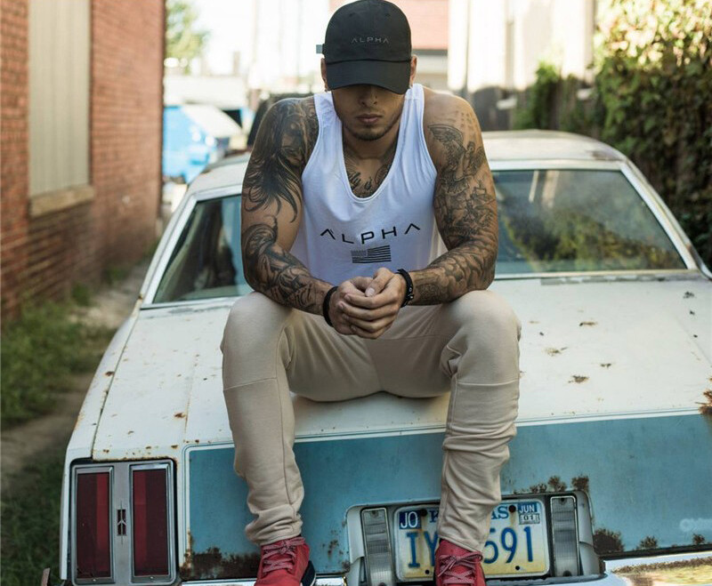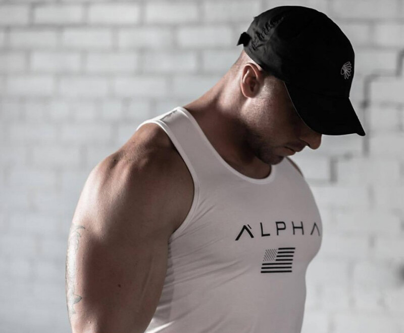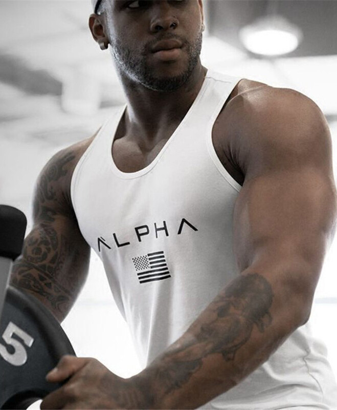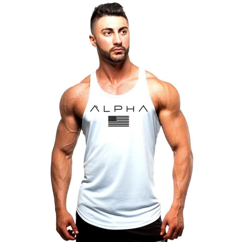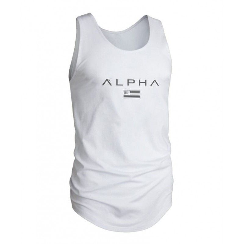 Фото - Мужская майка для занятий спортом от Alpha белого цвета - Men box