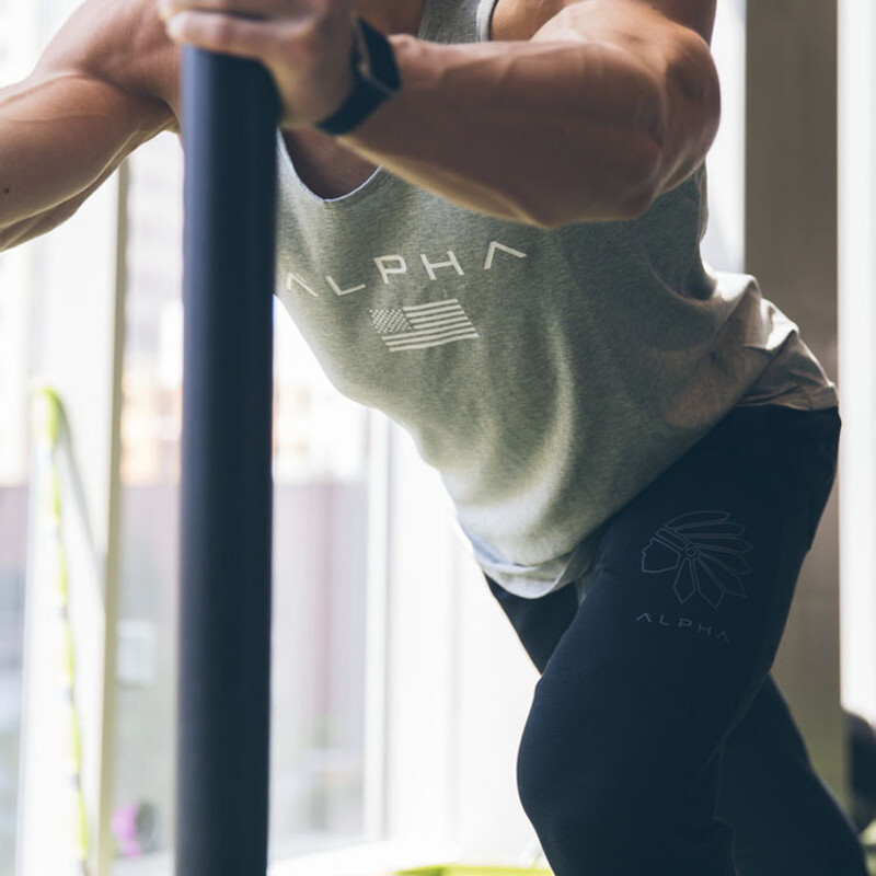 Фото - Майка для занятий спортом от бренда Alpha серого цвета - Men box