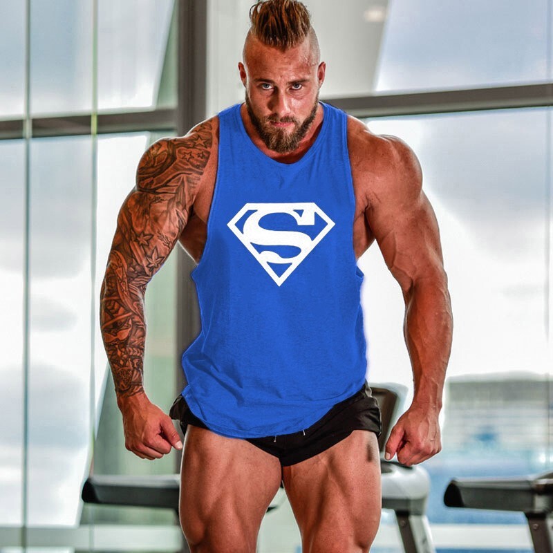 • Майка в синем цвете Sport Line с белым принтом Superman