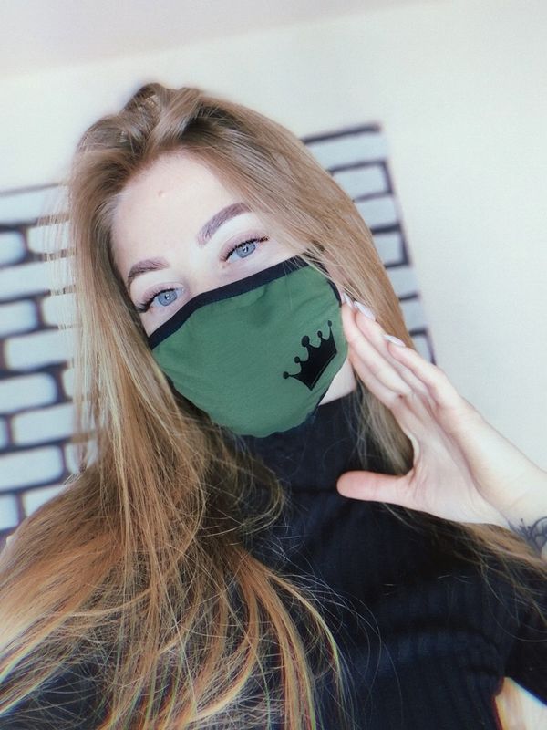 • Многоразовая женская маска темно-зеленого цвета с короной