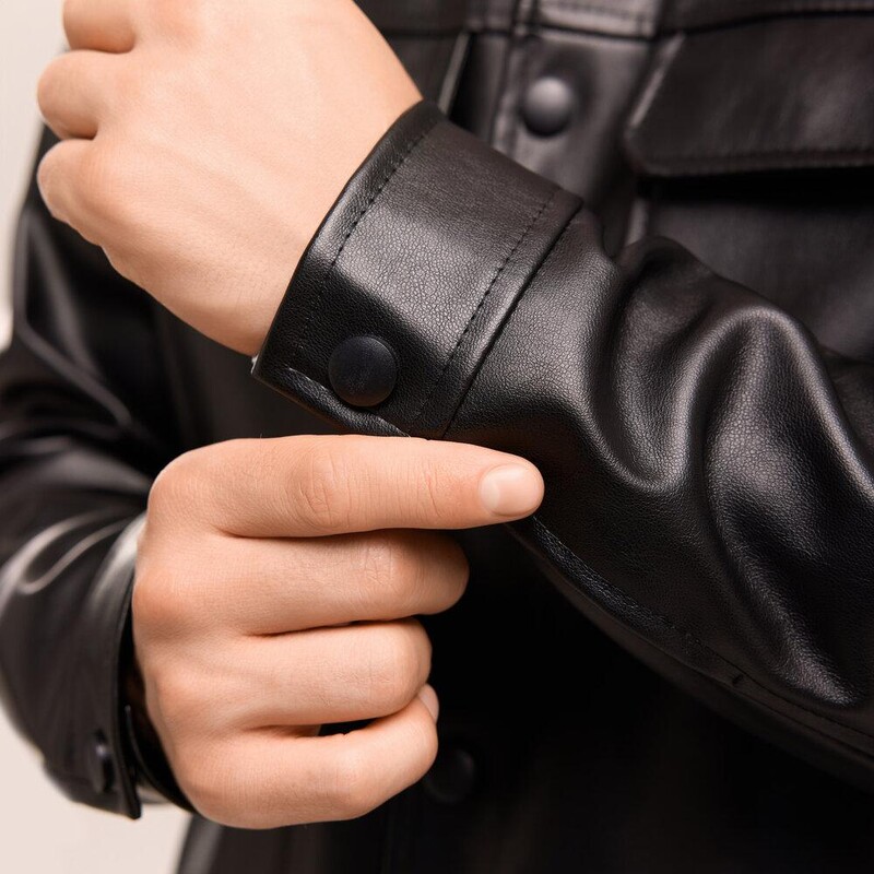 Куртка Pobedov Arkon в чёрном цвете — это современный минимализм с выразительным характером, идеальный для весенне-осеннего сезона. Модель выполнена из инновационной эко-кожи на замше (100% полиэстер), что является мягкой на ощупь альтернативой классической коже. Прямой крой и приспущенная линия плеча создают актуальный современный силуэт. Куртка оснащена отложным воротником из основной ткани и застёгивается на кнопки. Манжеты также выполнены из основной ткани, поддерживая минималистичный дизайн. Для комфорта и долговечности предусмотрена внутренняя подкладка. Функциональность модели обеспечивают два боковых кармана для рук и два дополнительных функциональных кармана на груди. Декоративная фигурная строчка на груди добавляет стильных акцентов, а продуманная фурнитура делает куртку практичной в ежедневном использовании.