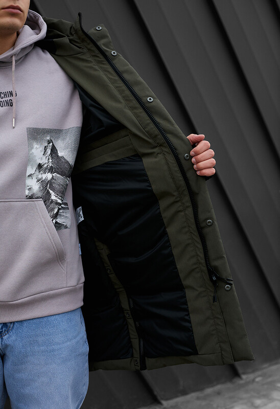 Довга зимова куртка із вологовідштовхуючого матеріалу забезпечена розрізами з боків — їхню довжину можна регулювати заради більшої зручності у використанні. Прорізні кишені гарантують комфортне укриття для рук, а додаткові манжети – надійне прилягання. Це чудова річ для холодної погоди, що вдало доповнить і зробить теплішим будь-який образ.
