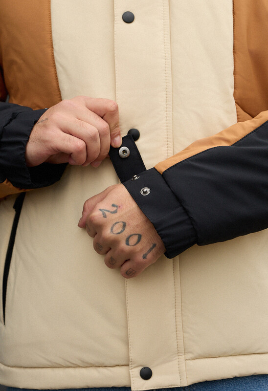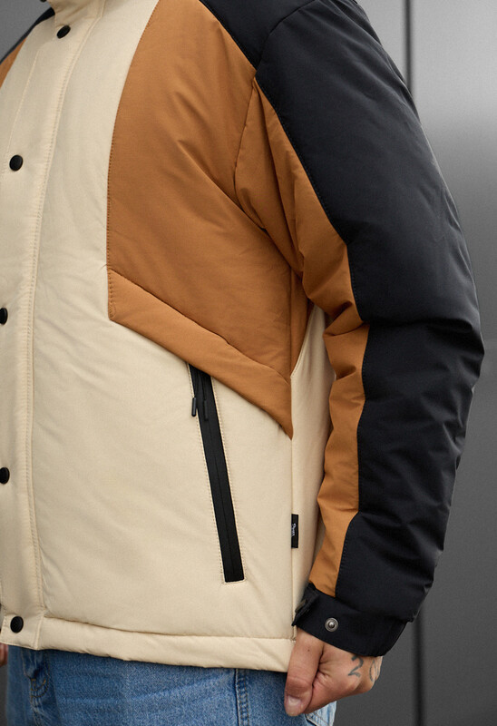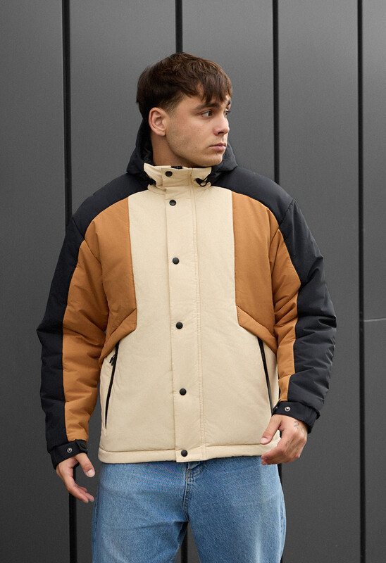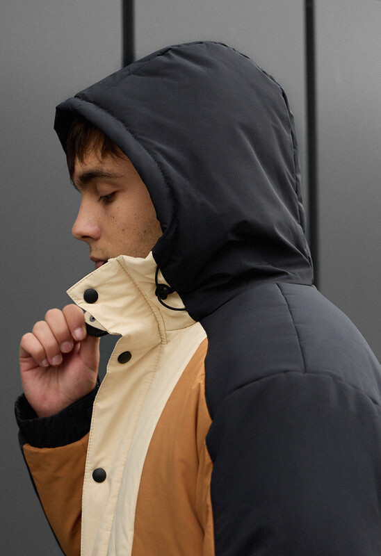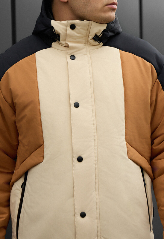 Идеальное решение для комфортной зимы в городе (от 0 до -20°C)! Эта стильная куртка в контрастном чёрно-молочно-коричневом цвете создана из влагоотталкивающего полиэстера и утеплена высококачественным Hollowsoft, гарантируя надёжную защиту от холода и ветра. Куртка имеет актуальный крой со спущенными плечами, высокую горловину, большой капюшон с фиксаторами и внешний тракторный замок-молнию, прикрытый планкой на кнопках. Защиту от продувания обеспечивают манжеты на резинках с кнопками и эластичная стяжка внизу для регулировки объёма, а функциональность подчёркивается двумя внешними карманами на водоотталкивающей молнии и двумя внутренними карманами.