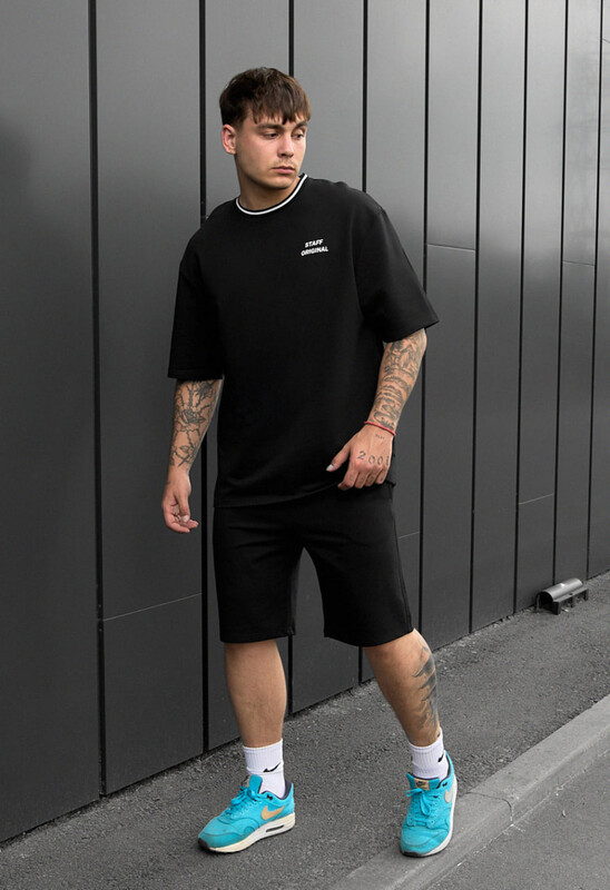Летний комплект обеспечит максимальный комфорт и свободу движений благодаря премиальной ткани – она не мнется и не теряет цвет. А принт с логотипом бренда на груди подчеркнет твою причастность к банде Staff.