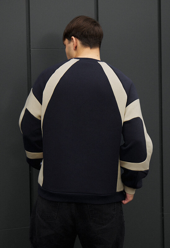 Создайте оптимальный микроклимат и удачно разбавьте свой осенне-зимний лук! Этот утеплённый свитшот кроя oversize в стильном двухцветном сочетании тёмно-синего и молочного обеспечит вам максимальное тепло и уют в холодное время года. Изделие изготовлено из качественного европейского 100% хлопка и утеплено микрофлисом премиум-класса изнутри, что гарантирует комфорт в течение всего дня. Свободный крой добавляет трендовый объём, а минималистичный дизайн с фирменной биркой, вшитой в боковой шов, делает его универсальной и стильной основой для любого образа.