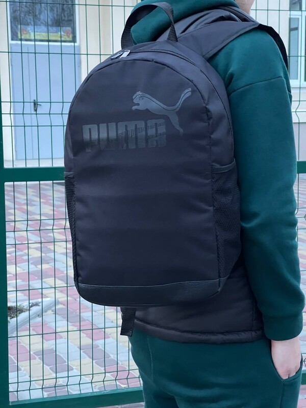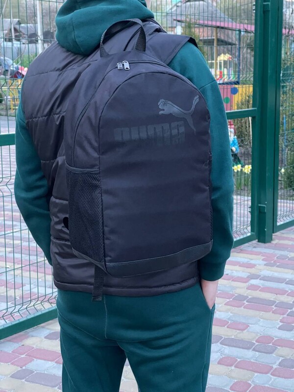 1 большое отделение, внутри есть два кармана, один из которых для ноутбука/планшета, 2 небольших кармана из сетки по бокам для мелких вещей или для воды. Мягкие и удобные плечевые ремни + ручка для ношения в руке.