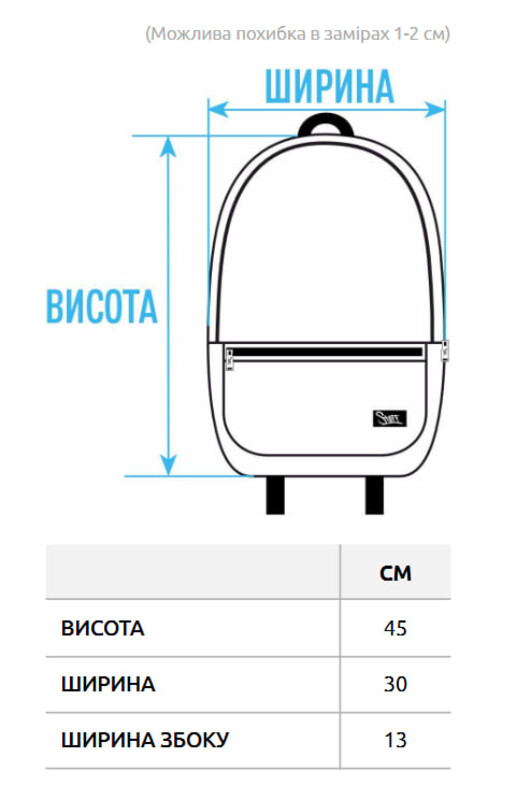 - размер: высота 45 см, ширина 30 см, ширина сбоку 13 см;