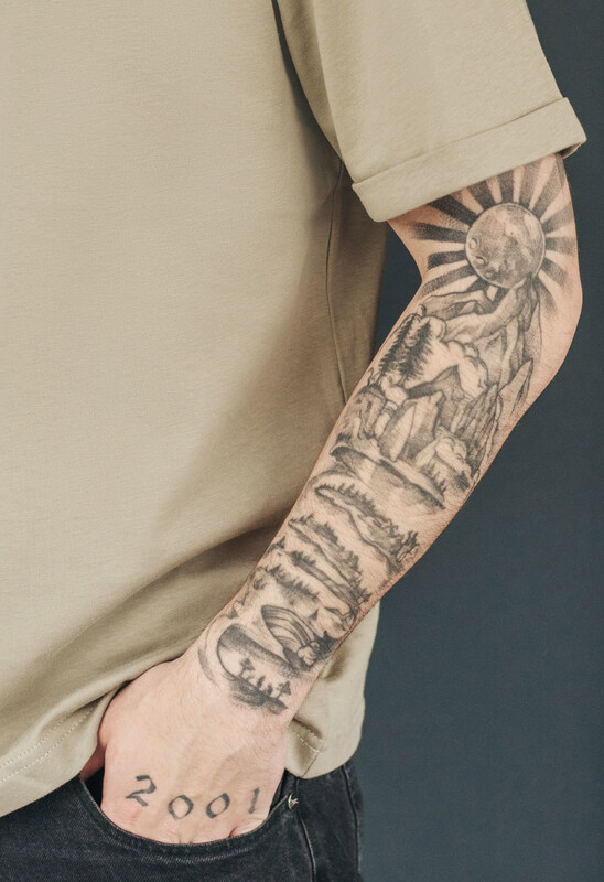 Футболка с подвёрнутыми рукавами создаст дополнительные линии, которые помогут подчеркнуть твой силуэт.