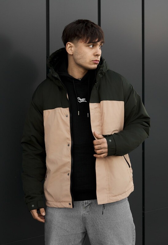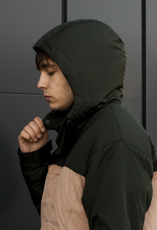 Современная мужская куртка в сочетании темно-зеленого и бежевого цветов создана для комфортного демисезонного периода от +17 до 0°C. Модель выполнена из 100% полиэстера и утеплена инновационным наполнителем Hollowsoft, обеспечивающим тепло без лишнего веса. Крой со спущенными плечами придает актуальный стиль, а капюшон с регулировкой надежно защищает от ветра. Функциональные карманы, ветрозащитная планка и качественная фурнитура делают куртку практичной для ежедневного ношения.