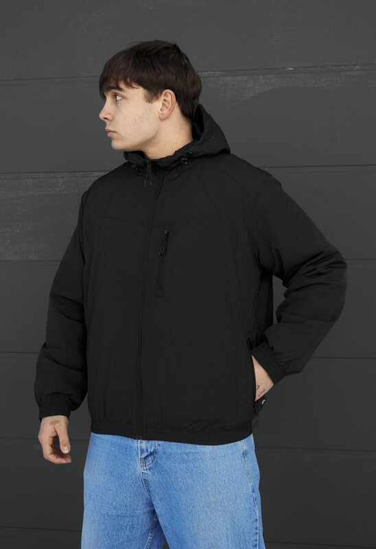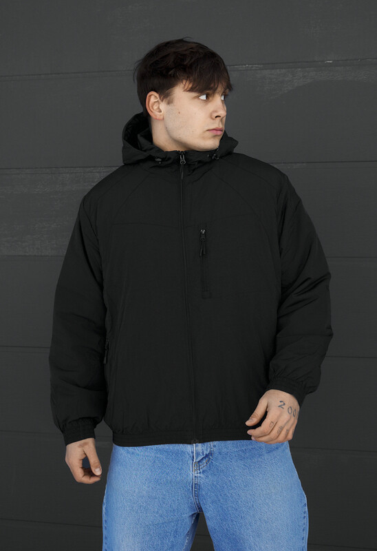 Мужская черная куртка с утеплителем Hollowsoft – идеальное решение для прохладного демисезона. Выполнена из 100% полиэстера, она сочетает легкость, тепло и износостойкость. Классический крой дополнен высокой горловиной с регулируемым шнурами капюшоном. Три внешних и два внутренних кармана на молнии обеспечивают практичность. Манжеты и низ на резинке придают комфорт. Подходит для температур от +15 до -5°C, сохраняя стиль и функциональность каждый день.