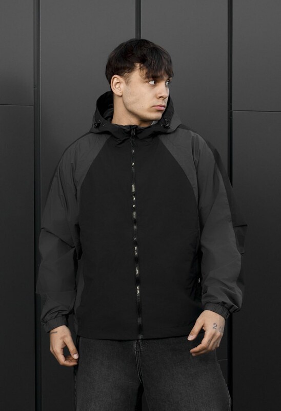 Стильная демисезонная куртка в черном/сером цвете – идеальный выбор для меняющейся погоды. Выполнена из 100% полиэстера с легкой сетчатой подкладкой, она обеспечивает комфорт и защиту от ветра при температуре от +25 до +8°C. Крой реглан гарантирует свободу движений, а капюшон с регулировкой добавляет практичности. Функциональные карманы на молниях, ветрозащитная планка и эластичные манжеты делают модель максимально удобной. Стильный принт на спине подчеркивает современный дизайн.