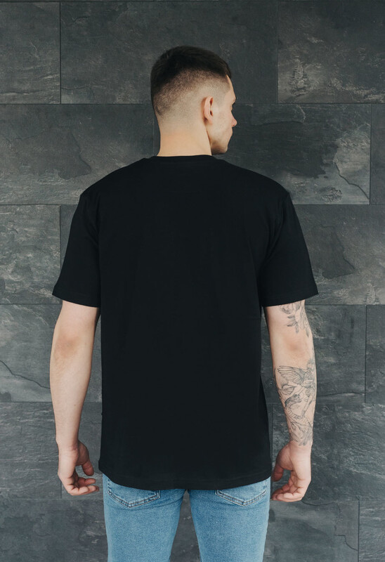 Фото - Черная патриотическая футболка Pobedov Peremoga с наклейкой "Герб" - Men box