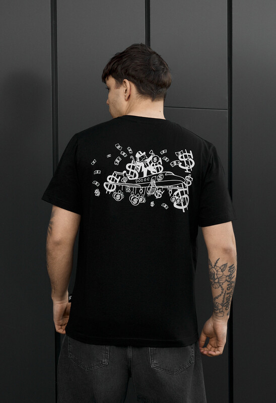 Стильная черная футболка с оригинальным принтом на спине Money Flow станет акцентом в повседневном гардеробе. Выполнена из качественной ткани: 90% хлопок и 10% эластан, обеспечивает комфорт, дыхательность и легкую эластичность. Классический крой и круглый вырез гарантируют универсальную посадку. Идеально подходит для любого сезона. Фирменная бирка в боковом шве подчеркивает подлинность и внимание к деталям. Подходит для городского стиля и casual образов.