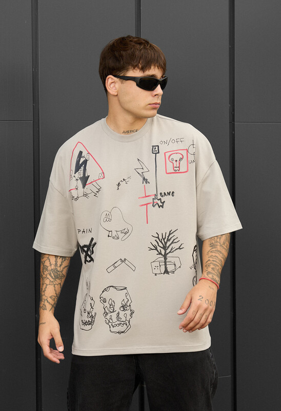 Оригинальная мужская футболка серого цвета в стиле oversize – выбор для тех, кто ценит индивидуальность. Изготовлена из качественного хлопка (90%) с добавлением эластана (10%), она мягкий, эластичный и комфортный в ношении. Свободный крой обеспечивает современный силуэт и свободу движений. Качественный принт спереди придает отчетливый характер образу. Круглый вырез подчеркивает универсальность, а бирка с логотипом в боковом шве гарантирует подлинность изделия.