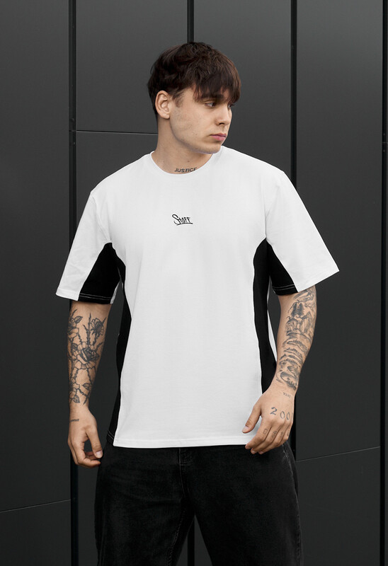 Стильная мужская футболка в контрастном сочетании белого и черного цвета – идеальная база для современного гардероба. Изготовлена из качественного хлопка (90%) с добавлением эластана (10%), она обеспечивает комфорт, эластичность и долговечность. Классический крой гарантирует удобную посадку, а круглый вырез придает универсальность. Качественный принт на груди подчеркивает индивидуальный стиль. Бирка с логотипом в боковом шве подтверждает оригинальность изделия.