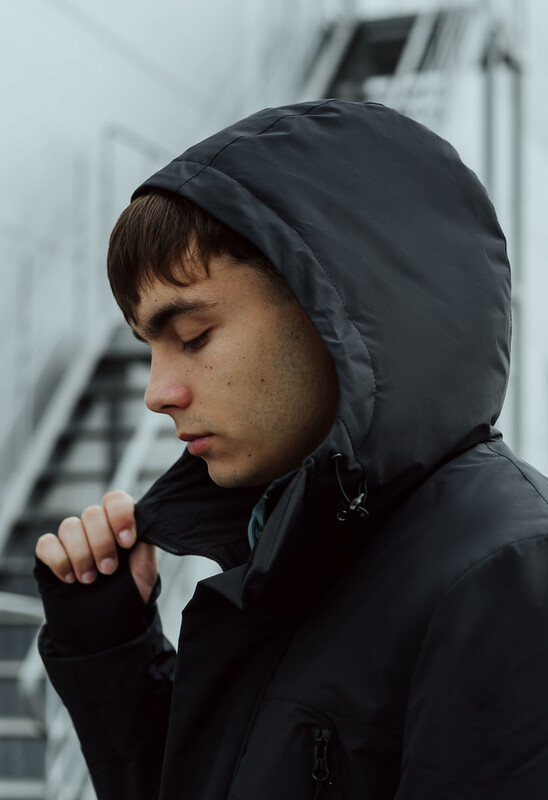 - объёмный капюшон регулируется шнуром с пластиковыми фиксаторами;