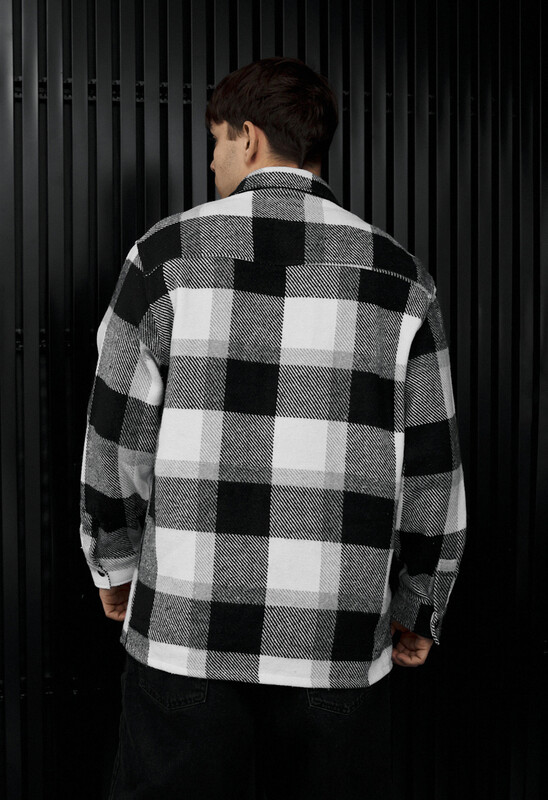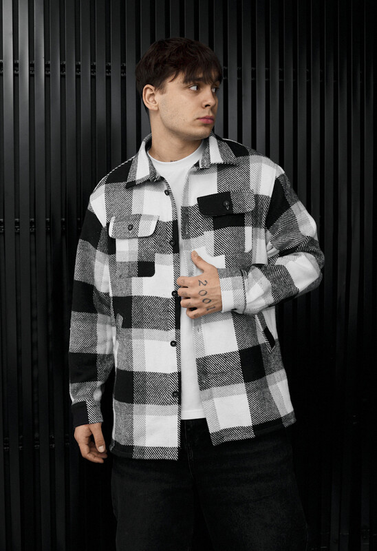Стильная мужская рубашка в бело-серой клеточке – идеальный выбор для ежедневного образа. Изготовлена из практического материала (95% полиэстер, 5% шерсть), хорошо держит форму и обеспечивает комфорт в прохладную погоду. Классический крой, отложной воротничок и застежка на пуговицах создают аккуратный вид. Нагрудные карманы с клапанами и прорезные боковые карманы придают функциональности. Прекрасно сочетается с джинсами и casual-одеждой.