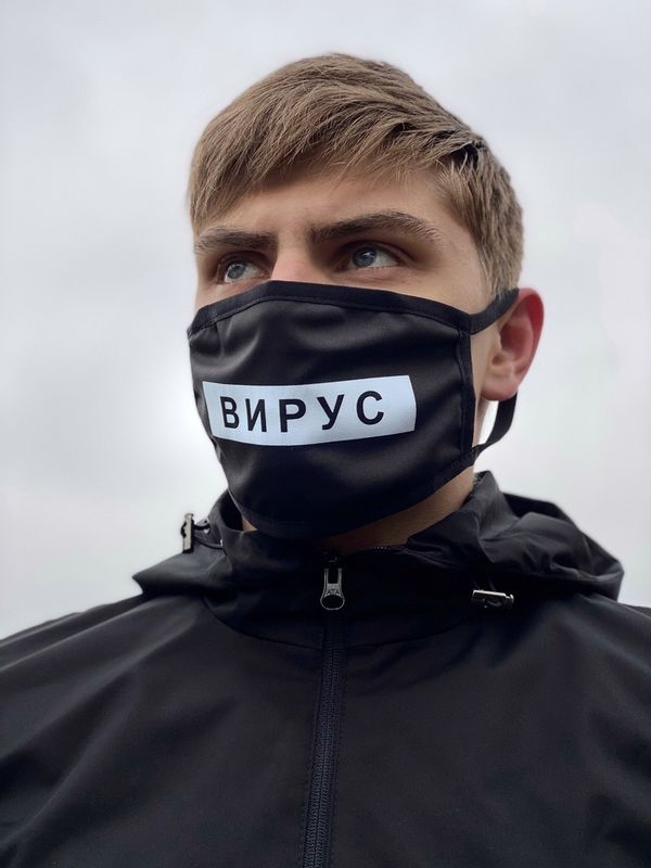 • Мужская маска тканевая с надписью "ВИРУС". Цвет: черный