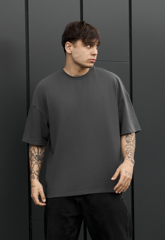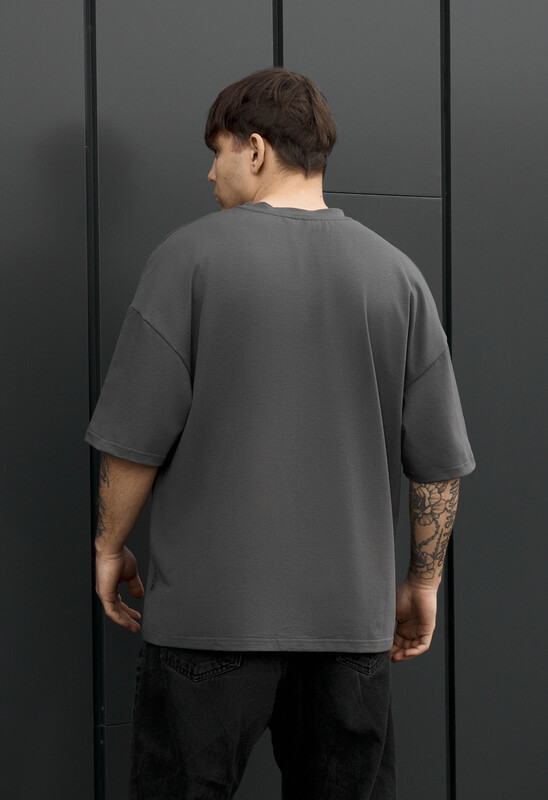 Темно-серая мужская футболка oversize – идеальный выбор для стильного и комфортного повседневного образа. Изготовлена из мягкого хлопка (90%) с добавлением эластана (10%), она обеспечивает приятные ощущения к телу и эластичность. Свободный крой со спущенными плечами создает современный силуэт и не стесняет движений. Круглый вырез придает универсальность, а бирка с фирменным логотипом в боковом шве подчеркивает качество изделия. Великолепная база для любого гардероба.