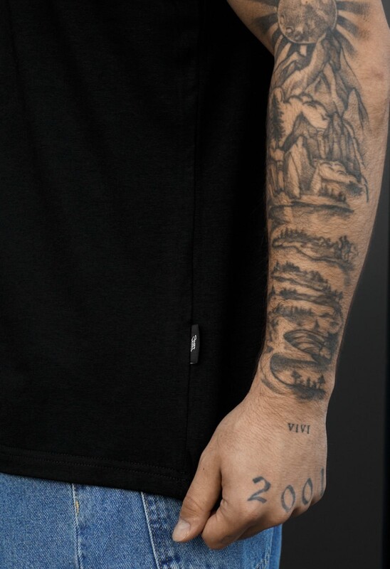 Стильная черная футболка — идеальный выбор для повседневного гардероба. Изготовлена из 90% хлопка и 10% эластана, она обеспечивает комфорт, мягкость и эластичность. Классический крой и круглый вырез гарантируют удобную посадку и придают уникальный характер образу. Бирка с фирменным логотипом вшита в боковой шов. Подходит для любого сезона и легко сочетается с разными стилями одежды.