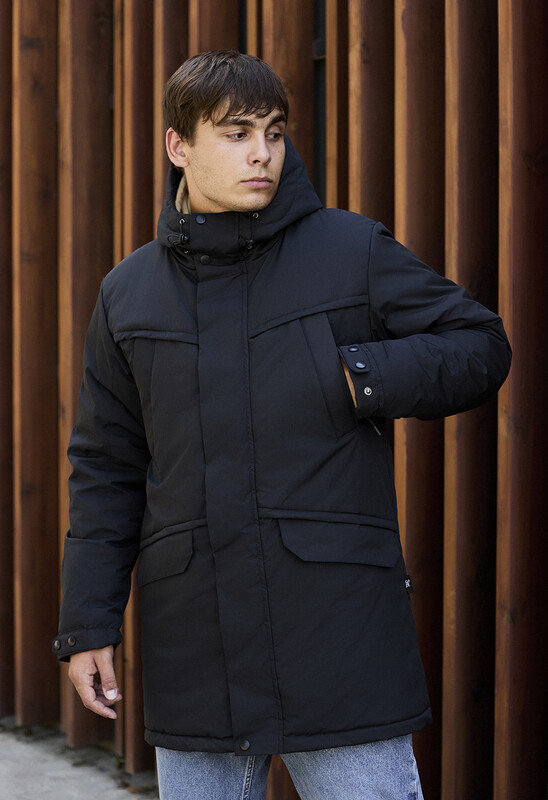 Зимова парка має високий ступінь теплоізоляції, добре тримає форму і відштовхує вологу. Подвійна накладка, що прикриває застібку ззовні та зсередини, забезпечить максимальний захист від вітру. А великі планки на кнопках, прикріплені над кишенями, допомагають речі виглядати незвичайно і стильно.