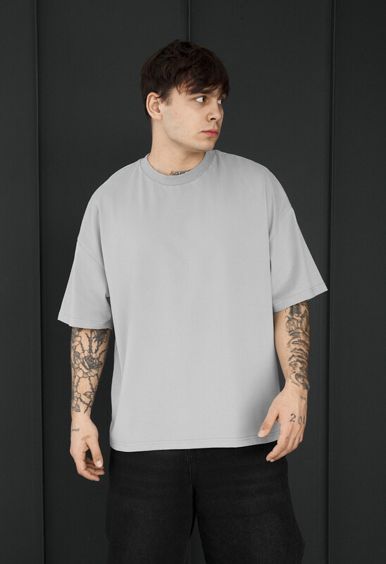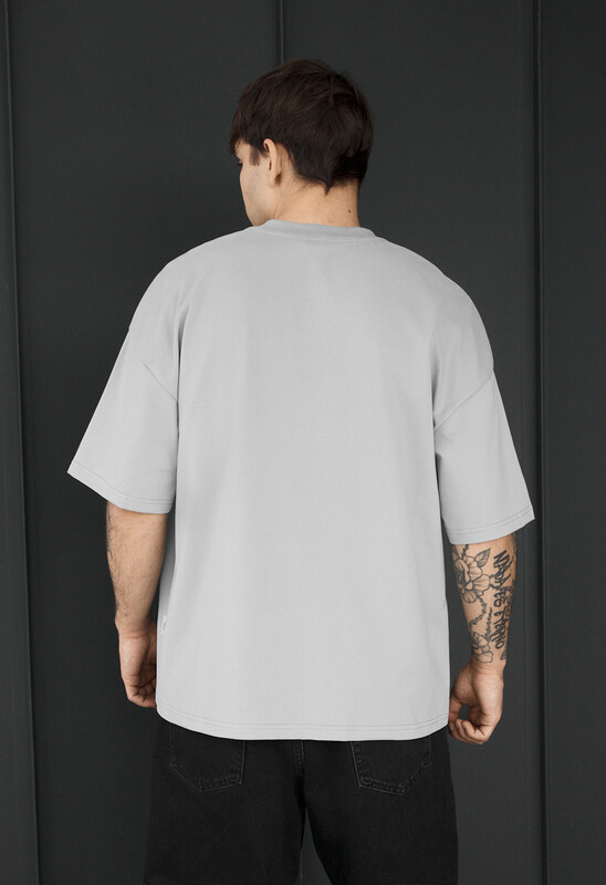 Светло-серая мужская футболка oversize – универсальная база для стильного повседневного гардероба. Изготовлена из качественного хлопка (65%) с добавлением полиэстера (35%), она обеспечивает комфорт, мягкость и эластичность. Свободный крой создает силуэт и гарантирует свободу движений. Круглый вырез придает лаконичности и удобству в ношении. Бирка с логотипом бренда в боковом шве подчеркивает оригинальность изделия. Идеально подходит для повседневного использования.