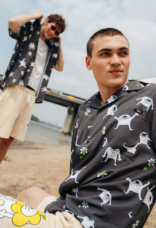 В коллаборацию вошли следующие позиции: рубашка «Пес», шорты «Цветок», полотенце «Вселенная» и боксеры «Флирт». Впервые выпущен уникальный продукт, который в дальнейшем будет появляться в ассортименте #Staffclothes.