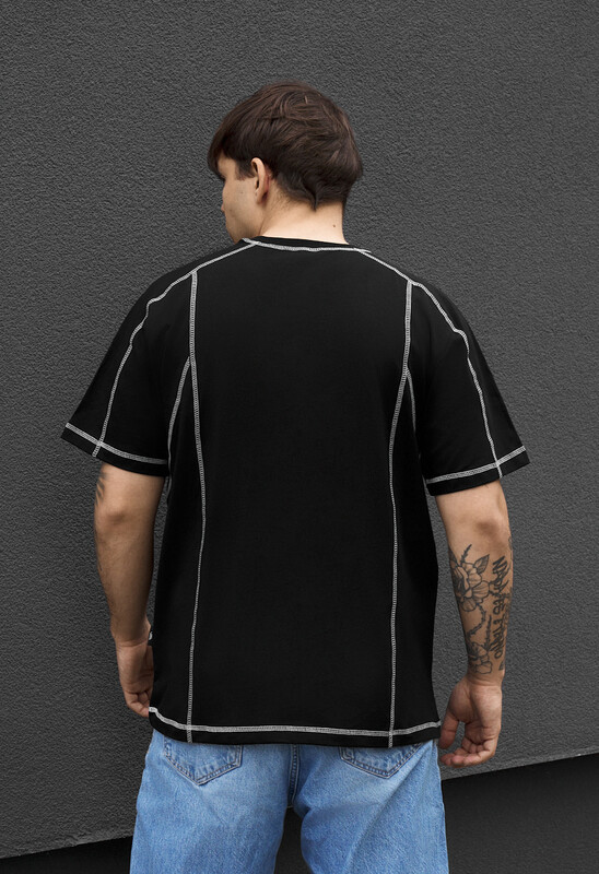 Черная мужская футболка oversize со спущенными плечами – стильное решение для современного гардероба. Выполненна из качественного хлопка (90%) с добавлением эластана (10%), она приятный к телу и хорошо держит форму. Контрастные швы придают выразительный дизайн, а вышивка на груди подчеркивает индивидуальность. Круглый вырез обеспечивает универсальность, а бирка с логотипом в боковом шве гарантирует оригинальность. Идеально подходит для ежедневного ношения.